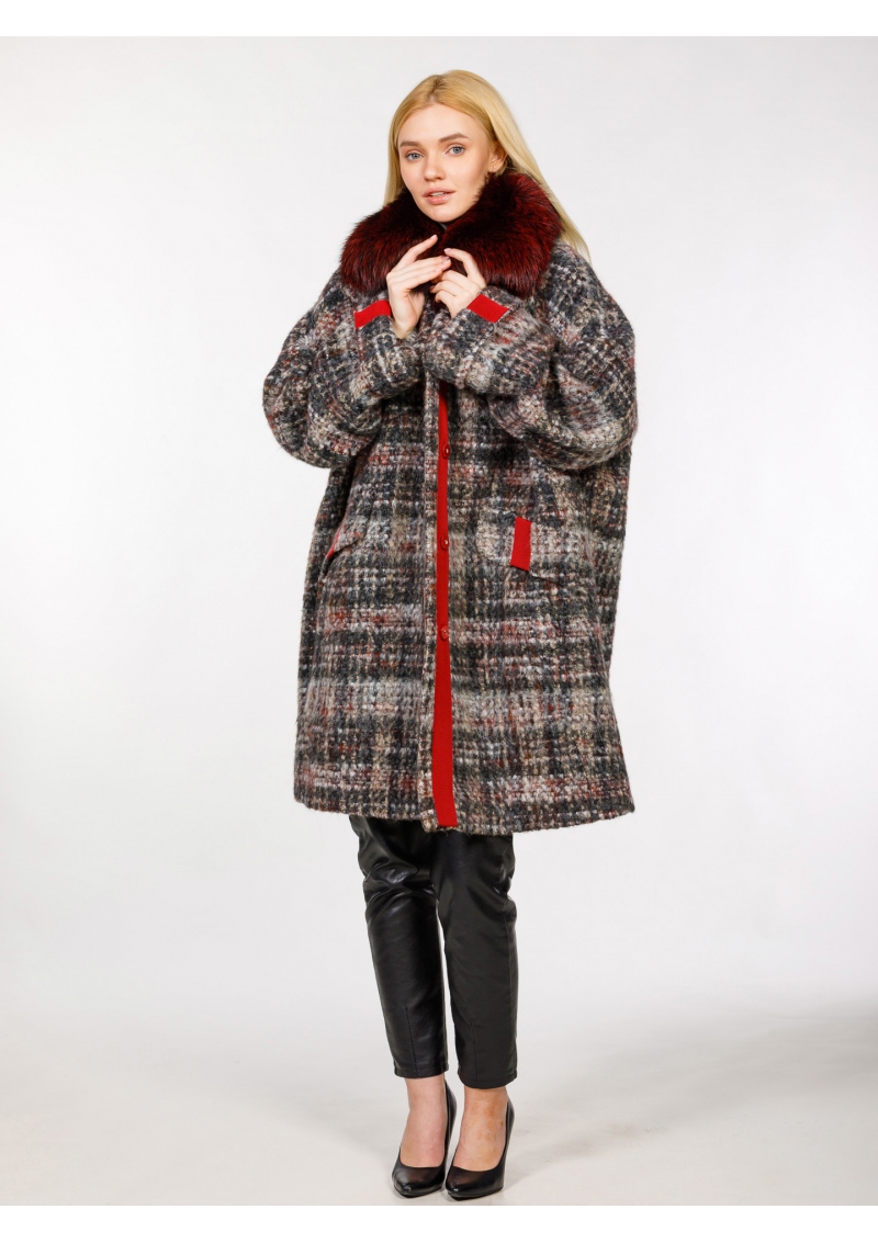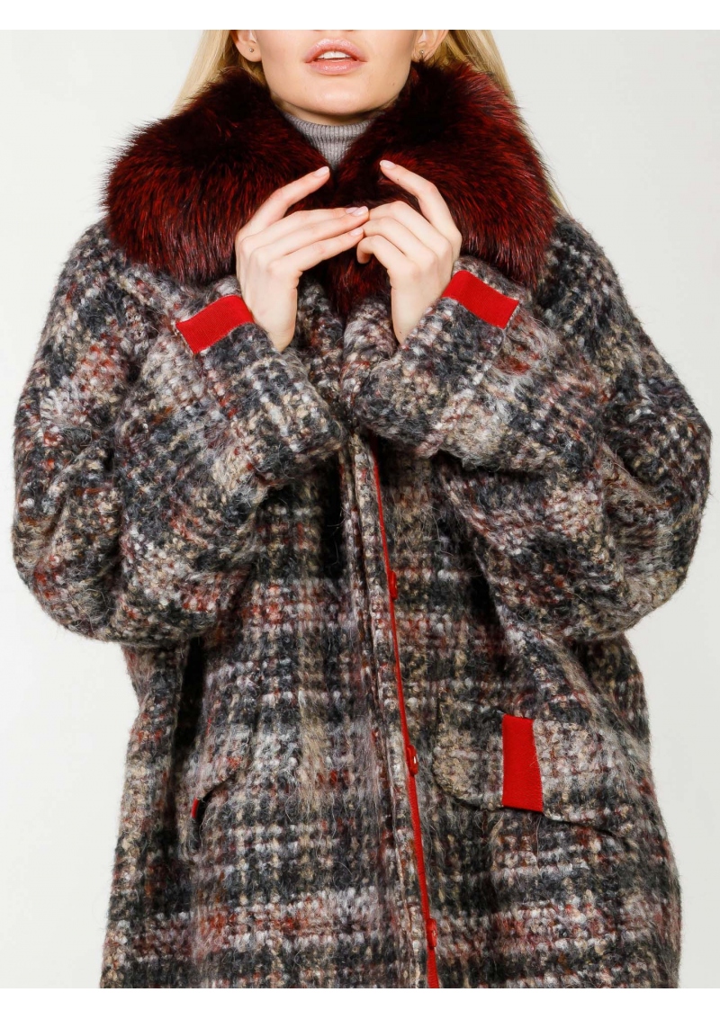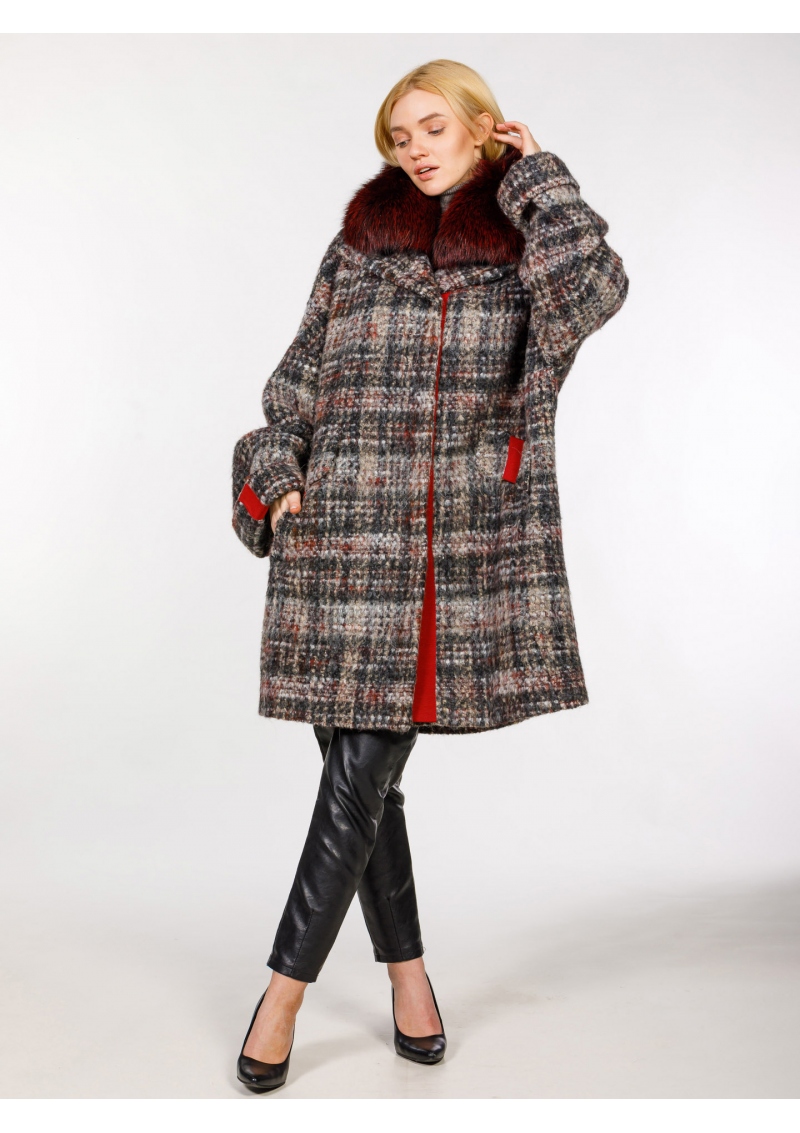 О товаре: Классическое пальто oversize силуэта с английским воротником из шерсти. Ворот отделка из чернобурой лисицы. Рукава со спущенной линией плеч. Карманы прорезные с рамкой и тесьмой красного цвета. Паты на рукавах красного цвета. Застежка-кнопки с тесьмой. Цвет "Клетка"
