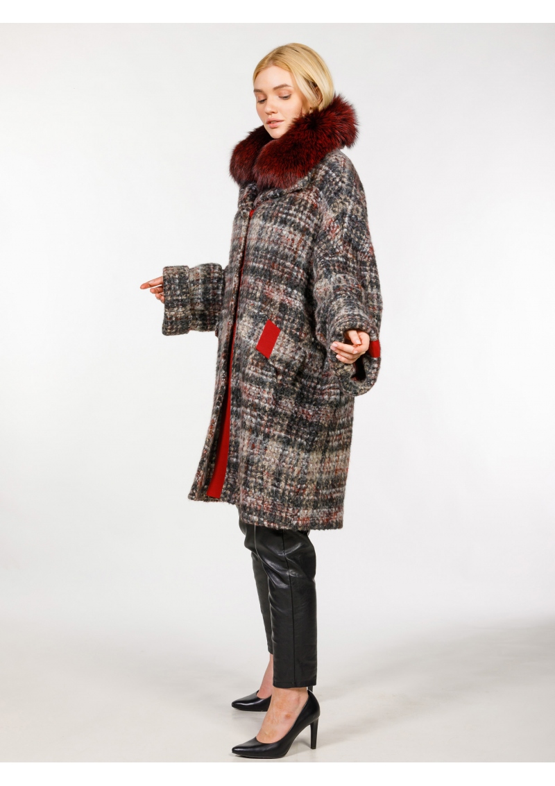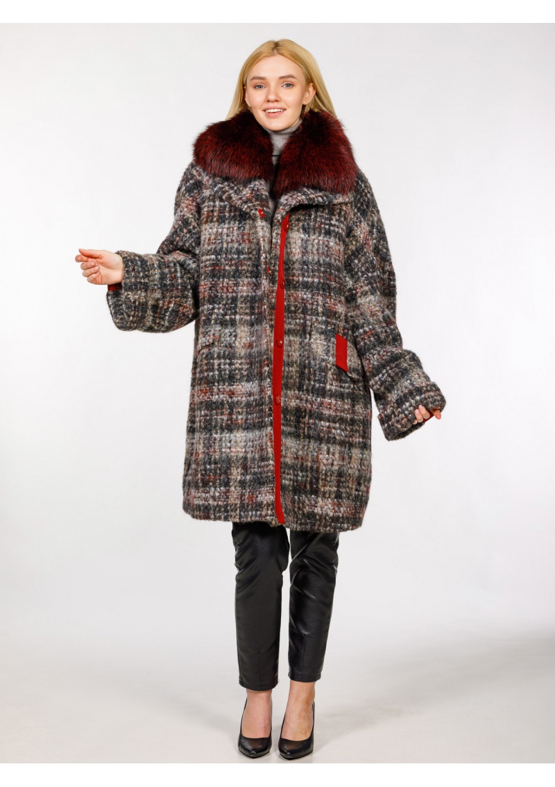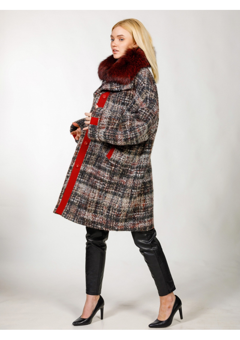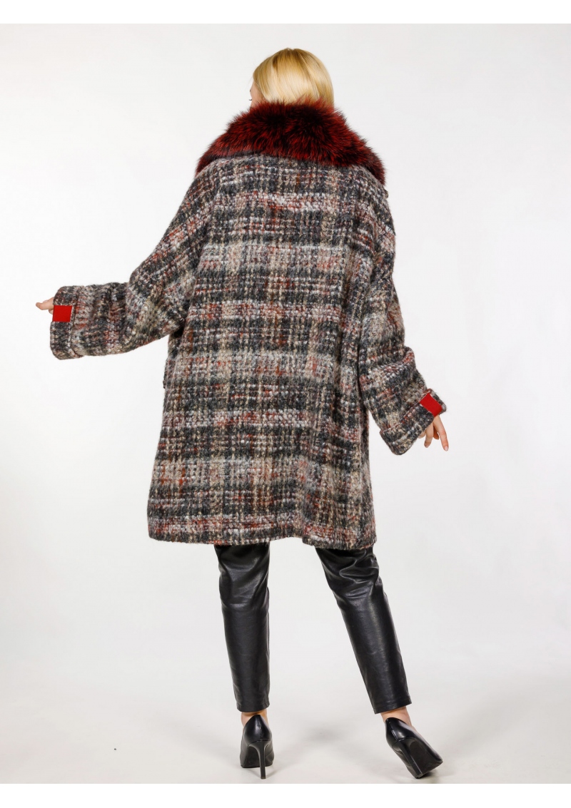 О товаре: Классическое пальто oversize силуэта с английским воротником из шерсти. Ворот отделка из чернобурой лисицы. Рукава со спущенной линией плеч. Карманы прорезные с рамкой и тесьмой красного цвета. Паты на рукавах красного цвета. Застежка-кнопки с тесьмой. Цвет "Клетка"